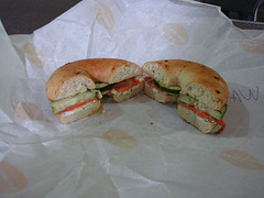 We don't have ABP where I live (I know, I know. I live in Siberia.) so I only get to eat this occasionally. But trust me when I tell you it's delicious! There is not too much wasabi, and ABP uses herb cream cheese on the onion bagel, which is just a lovely mixture of flavors. There are cucumbers, too! So it's kind of healthy. Except for the cream cheese factor. But did I mention there is lox???